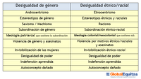 Para que lo veamos mejor, a continuación mostramos el paralelismo entre ambos tipos de desigualdades, entre la de género y la étnico/racial.
