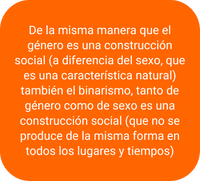 Por otro lado, el término “GÉNERO” se utiliza para designar la construcción cultural que hace una sociedad a partir de las diferencias biológicas. Así, se adscriben culturalmente características, actitudes, comportamientos, valores, funciones y relaciones diferenciadas entre hombres y mujeres en función de su sexo (Aquí hablamos sólo de hombres y mujeres, pues en sociedades patriarcales y heteronormativas, aún no se reconocen legalmente otros géneros, pero diferentes sociedades pueden contar con diferente sistemas de género(1)). Es un concepto cambiante, y las características de cada género varían según la cultura y el tiempo, de manera que hombres y mujeres se han comportado de manera diferente dependiendo del país y la época en los que viven. Es una diferencia construida SOCIALMENTE.